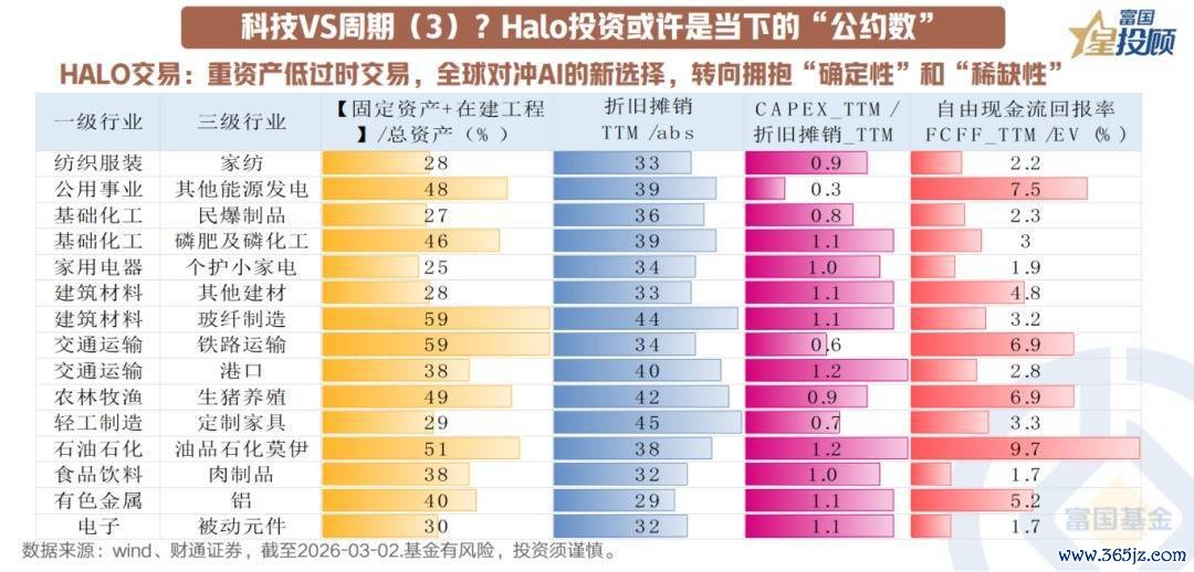 当前美股在进行HALO交易,即放弃看不明白的科技后半场,提前转向长期左侧交易替代对冲,市场风格从追逐“成长性”转向拥抱“确定性”和“稀缺性”。而A股对长期科技叙事的反映偏弱,对当下可见的“新老经济通胀”反映非常积极。价值风格相对占优是全球的共同特征。这与“HALO交易”在A股的映射有关。关于不容易被替代的战略资产:大国博弈背景下,战略资源自主可控本就是核心投资线索。除此之外,周期在胜率和赔率方面兼具优势。而从“重资产、低折旧”思路出发,当前在基础化工、建筑材料、交通运输、公用事业等方向均可以找到满足条件的细分方向。