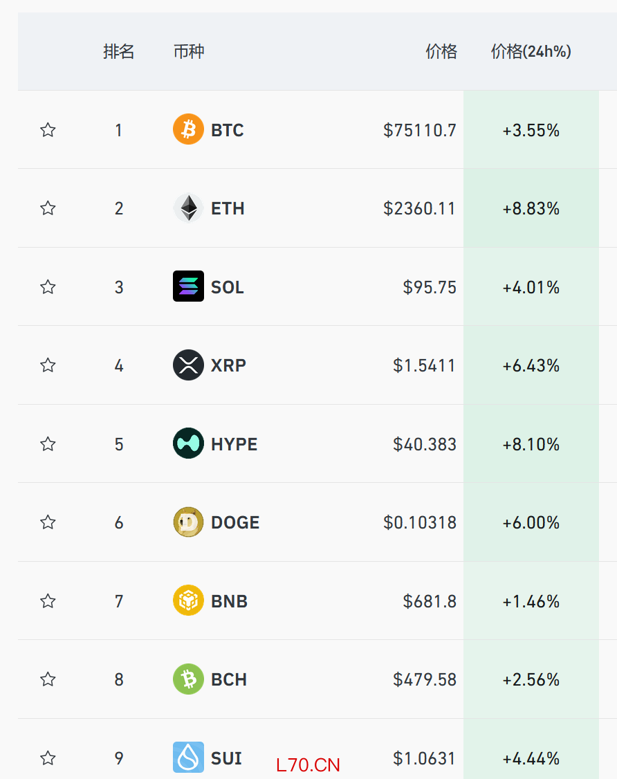 3月17日,加密货币市场集体大涨,比特币突破7.5万美元,日内涨幅超3%;以太坊突破2300美元,涨幅接近9%。SOL、XRP、狗狗币等同步走高。
